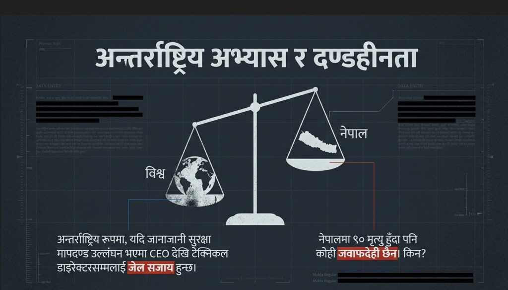 अन्तर्राष्ट्रिय अभ्यास हेर्दा—यदि एयरलाइन्सले जानाजानी सुरक्षा मापदण्ड उल्लंघन गरेको प्रमाणित हुन्छ भने सीइओदेखि टेक्निकल डाइरेक्टरसम्म फौजदारी अभियोग लाग्छ ।
