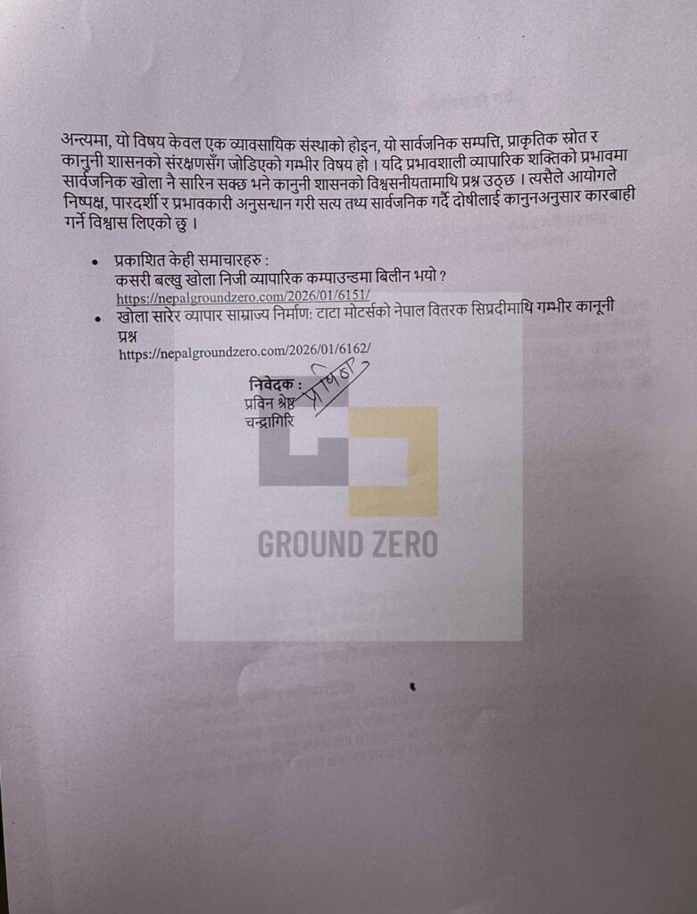 यो केवल एउटा कागजी निवेदन होइन—यो सार्वजनिक स्रोतको संरक्षणका लागि गरिएको औपचारिक कानुनी कदम हो ।