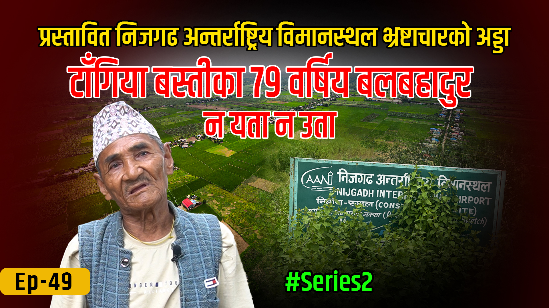 बाराको जितपुर सिमरा उपमहानगरपालिका–१६ ‘टाँगिया बस्ती’मा निर्माण हुने प्रस्तावित निजगढ अन्तर्राष्ट्रिय विमानस्थल २८ वर्षदेखि चर्चामा छन् । विमानस्थल निर्माणको नाममा १ अर्ब ६ करोड भन्दा बढी खर्च भइसक्यो । तर, टाँगिया बस्तीबाट बिस्थापित हुने २ हजार २ सय घरधुरीलाई कहाँ सार्ने हो ? कसरी सार्ने हो ? कति मुआव्जा दिने हो, त्यसको केही टुंगा छैन ।तत्कालिन सरकारले टाँगिया क्षेत्रमा भएको वन फरानी पछि रुख रोप्नका लागि २ सय भन्दा बढी परिवारलाई ५१ वर्ष अघि टाँगिया बस्तीमा ल्याएको थियो । जसमध्ये एक हुन् ७९ वर्षिय बलबहादुर रानामगर । जब २०५० सालमा टाँगिया बस्ती हटाएर विमानस्थल निर्माण गर्ने...