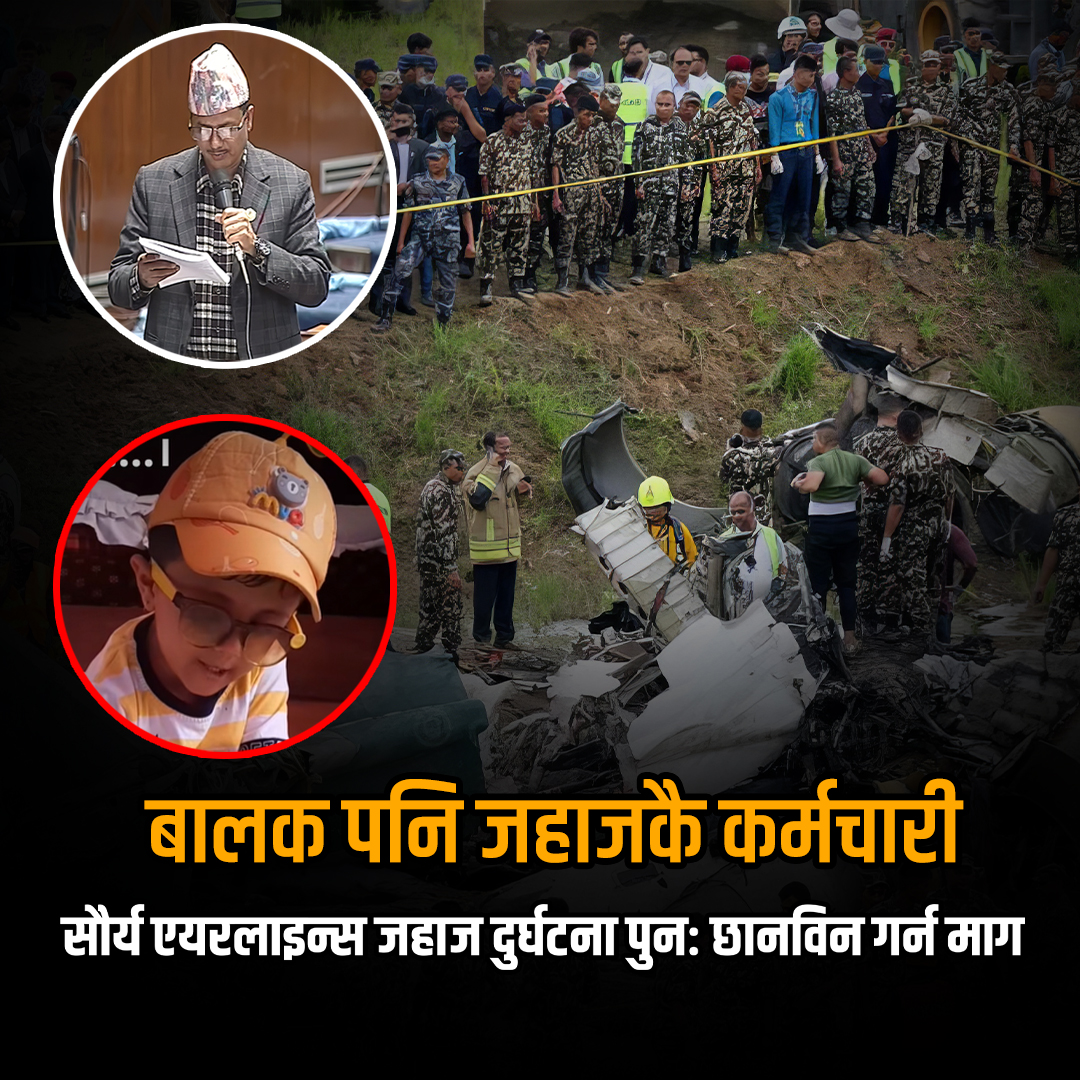 एकीकृत समाजवादीका सांसद् शेरबहादुर कुँवरले सौर्य एयरलाइन्स जहाज दुर्घटनाको पुनः छानबिन गर्न माग गरेको छ । बुधबारको प्रतिनिधि सभाको बैठकमा सांसद् कुँवरले गएको साउन ९ गते त्रिभुवन अन्तर्राष्ट्रिय विमानस्थलमा सौर्य एयरलाइन्सको जहाज उडान गैरकानूनी रहेको र बालकलाई कर्मचारी बनाएको भन्दै सो दुर्घटनाबारे पुनः छानविन गर्नु पर्ने प्रसंग उठाएका हुन् ।त्रिभुवन अन्तर्राष्ट्रिय विमानस्थलमा उडेको केही बेरमै ९ साउन २०८१ मा सौर्य एयरलाइन्सको जहाज दुर्घटनाग्रस्त हुँदा त्यसमा सवार १९ मध्ये १८ जनाको मृत्यु भएको थियो । उक्त दुर्घटनामा पाइलट मनिष शाक्य भने बाँच्न सफल भएका थिए ।