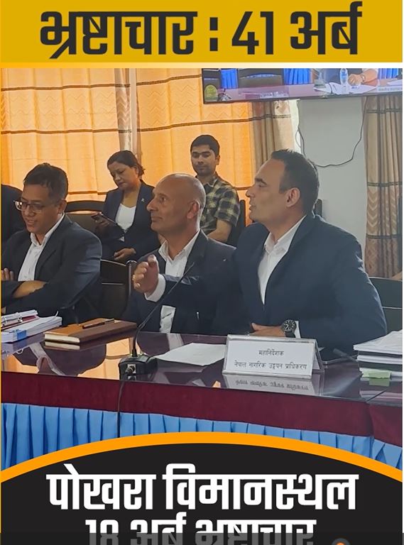 जब नेपालको आकाशमा हवाई दुर्घटना हुन्छन् । त्यसपछि नेपाल नागरिक उड्डयन प्राधिकरणमाथि प्रश्नहरु उठ्छन् । सडकदेखि सदन सम्मकाले, प्राधिकरण नेतृत्वको विरोद्ध गर्छन् । तर, सुधार केही हुँदैन । दुर्घटनापछि छानबिन समिति बन्छन् र प्रतिवेदनहरु संस्कृति, पर्यटन तथा नागरिक उड्डयन मन्त्रालयकै दराजमा थन्किन्छन् । दुर्घटनाका सबै भन्दा बढी दोषि, जो हुन्छन्, त्यही व्यक्तिसँग सरकारका मन्त्रीहरु रमाउछन् कारबाहीको सट्टा । यो त भयो दुर्घटनाको दृष्टिकोणबाट ।अब हामी भौतिक निर्माण तर्फ कुरा गरौं । नेपालको उड्डयन क्षेत्रमा भौतिक संरचना बनाउने नाममा प्राधिकरणका महानिर्देशक प्रदिप अधिकारीले गरेको ४१ अर्बको भ्रष्टाचार...